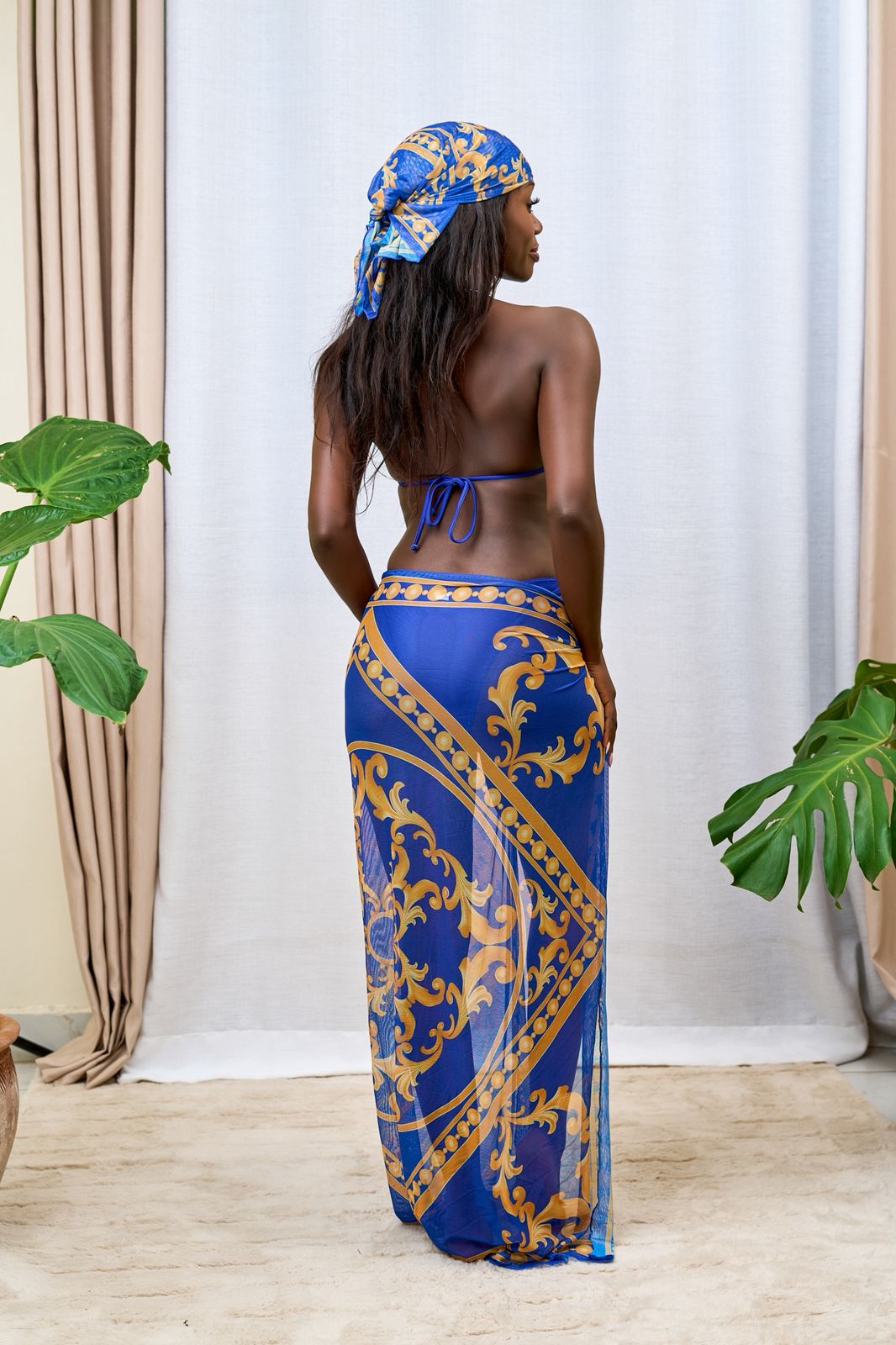 This four-piece set includes a Brazilian bikini featuring a side wrap and a coordinating head wrap. Made from a blend of spandex and polyester, the fabric is breathable, quick-drying, and non-toxic. The bikini also has removable padding and antibacterial properties to ensure comfort and hygiene.